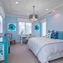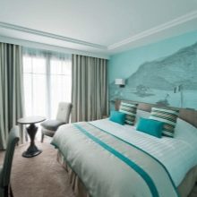 Velegnet til soveværelset og sarte, kolde nuancer. Pistache, lys blå, skygge af havbølgen er fremragende muligheder, der ser spektakulære ud i kombination med hvid, fløde eller beige.