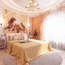 Beige, brun, grå, mejeri og elfenben ser godt ud i soveværelset. Det er muligt at kombinere alle ovenstående muligheder. Resultatet er et interessant og harmonisk ensemble. Psykologer rådgiver at ty til design af soveværelset på denne måde, hvis ejere i livet ikke har stabilitet.
