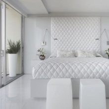 Vi skal også tale om den klassiske - hvide.. Der er en opfattelse af, at dens kølighed og ensartethed er dårligt egnet til soveværelser, men med den kompetente kombination af denne farve med andre nuancer kan du skabe et harmonisk og moderigtigt interiør, som vil være behageligt i det.