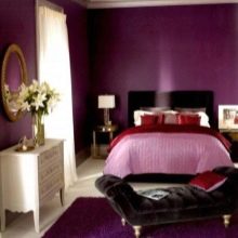 - Lilla. Denne farve er interessant og mangefacetteret, men den skal vælges meget omhyggeligt og omhyggeligt, ellers kan situationen vise sig at være deprimerende og forårsage depression. Hvis du ønsker at ty til en sådan beslutning, er det bedre at konsultere en designer for ikke at ødelægge billedet af rummet.