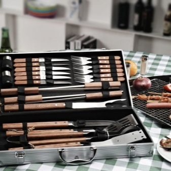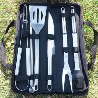 I dag er der en lang række sæt til salg. Mange vil spørge om dets nødvendighed, fordi alle har knive, gafler, skovle osv. I køkkenet, og de manglende apparater kan købes separat, hvorfor bruge ekstra penge. Producenter, der beskæftiger sig med fremstilling af redskaber til madlavning på åben ild, tilbyder ikke kun tallerkener, men veludformede og valgte sæt tilbehør til deres komfortable brug, fordi vi i første omgang har at gøre med høj temperatur. Hvile skal have en behagelig afslutning og ikke ende med en forbrænding af hænderne.