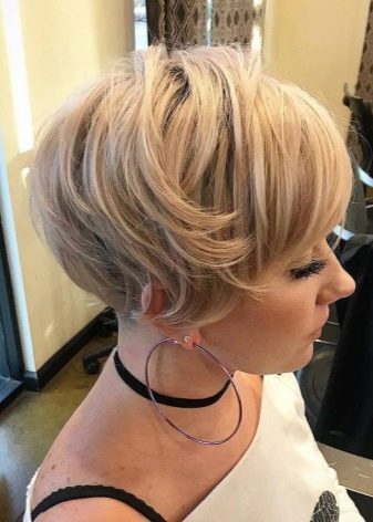 Når de oprettes, formales den occipital region normalt, og ansigtsstrengene ligger som sådan spredt. Håret, der skæres af mesteren maksimalt i øreområdet, gør kronen visuelt endnu højere. Kontur af hårklippet med al sin kreativitet ser meget pænt ud, og derfor er den daglige pleje for det så forenklet.
