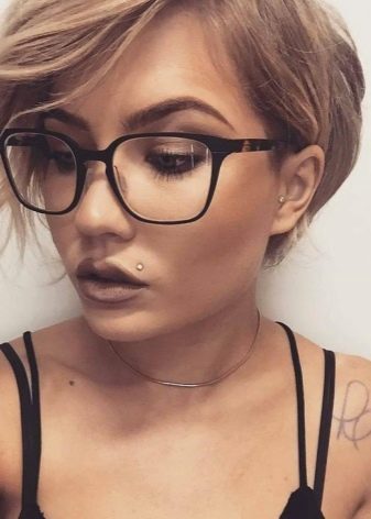 Hvis du vil distrahere opmærksomheden fra små ufuldkommenheder i dit ansigt, og du kan lide at bære korte stilfulde frisurer, så er denne mulighed for dig. Takket være kaotisk liggende tråde i forskellige længder, et for rundt ansigt eller omvendt et tyndt får en blødere kontur.