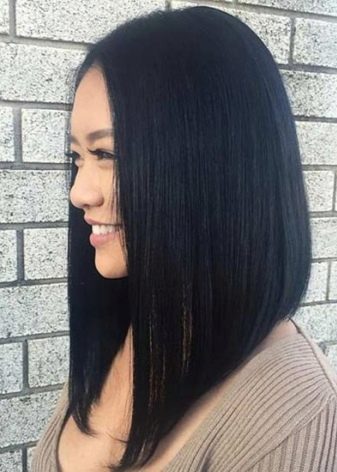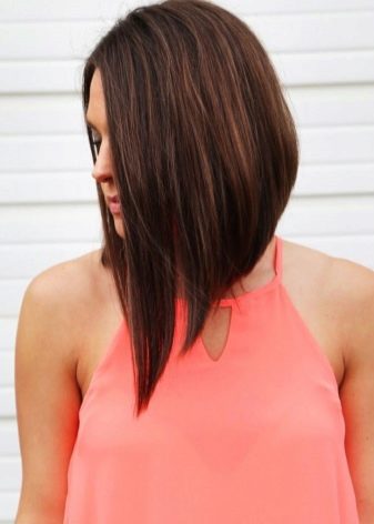Skrå plads er velegnet til ejere af store ansigtstræk. Aflange frontstrenge understreger smukt halsen. Spredningen mellem den nederste linje af frisuren i ryggen og i ansigtet er minimal: op til 8 cm.