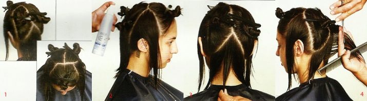 - udviklingen af det valgte område af håret udføres i lodrette låse med en fyrlinie under 90 grader (i retning fra smellene til bagsiden af hovedet, fra linjen med naturlig afsked);