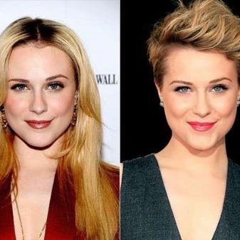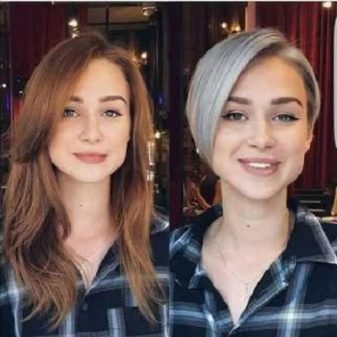 På disse fotos har pigerne oprindeligt på grund af en mislykket frisure en lidt lavere kæbe, som et resultat af, at deres ansigt sækker nedad. Men ved hjælp af en klippekaskade var ansigtstrækene afbalancerede, harmoni dukkede op i proportioner.