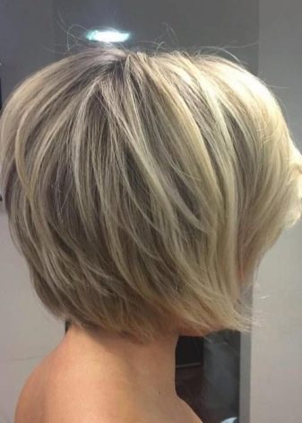 Dannes ved trin i hele håret, inklusive whisky. Lette lag af tråde i kronområdet giver frisyrens pragt, hvilket gør det overordnede udseende mere nøjagtigt, og håret - voluminøst.