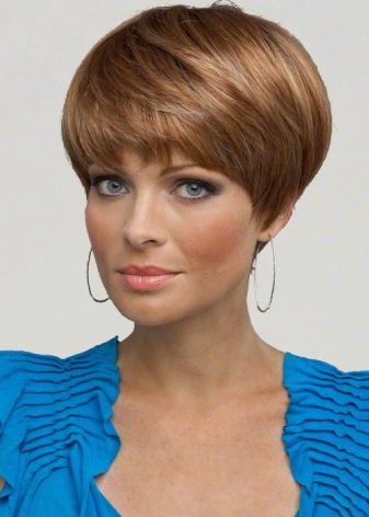 - kasket - Den bedste mulighed for et rundt ansigt og tyndt hår. Det udføres på rent, hårtørret hårtørret. Skum påføres rødderne af hver streng, derefter tørres håret med en hårtørrer, hvorved enderne drejes indad. Bangs behandles med gel og opdeles i tråde.