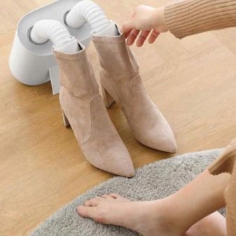 - Tørreren er universal. Det kan være nyttigt ikke kun til tørring af sko, men også til tøj. Til tørring kan du blot rette luftslangerne til en fugtig overflade.