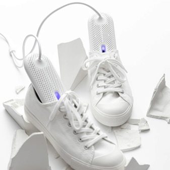 - ozonisering - ingen varm luft, men ventilationen fungerer så meget som muligt og tørrer skoene og fjerner ubehagelige lugte, mens bakterierne er fuldstændigt ødelagt. Det skal bemærkes, at rummet efter ozonationsproceduren lugter som ozon, derfor anbefales det at bruge denne mulighed i et rum med åbne vinduer.