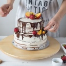 For øvrigt er madfarve en fantastisk måde at opnå en lys og interessant dessertfarve på. For eksempel ved at smelte et par fliser hvid chokolade og blande den med den resulterende skygge, kan du dekorere kagen med spektakulære chokoladepudder rundt om kanterne. Stykker kandiseret frugt eller friske bær kan placeres ovenpå.