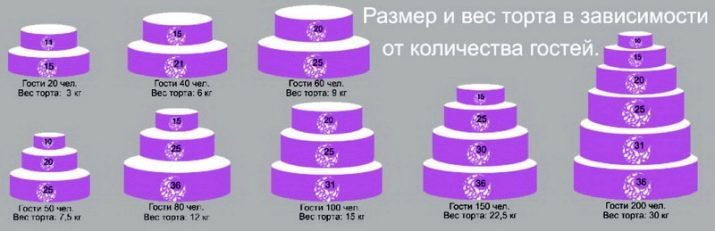 Du er nødt til at tænke på sådanne parametre som størrelse og vægt i et tilfælde - hvis du vil se en kage med flere lag på din fest. Mest sandsynligt har du allerede besluttet antallet af gæster i dit bryllup, hvilket betyder, at du kan groft beregne den krævede mængde portioner. En stor rolle spilles af appetitten hos dine gæster. Som regel gobler nogle gæster villigt alle de retter, der tilbydes, mens andre kun spiser en eller to skeer "ud af anstændighed". Kagen skal laves med en lille margin. Når du beregner pr. Portion, skal du tage hundrede og halvtreds gram. Multipliser dette antal med antallet af gæster, og tilføj to til tre portioner til resultatet.