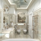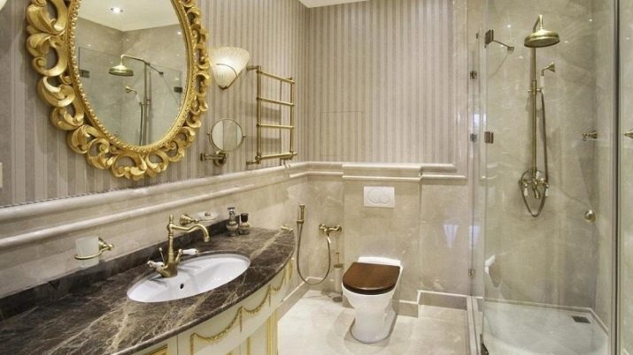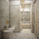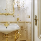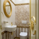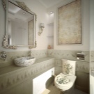 - Classic. Lysekroner i toilettet hænger normalt ikke, især hvis det er lille. Til et klassisk interiør i toilettet skal du vælge en håndvask i antik stil, et ældre spejl med en smuk ramme og et elegant marmorgulv.