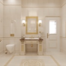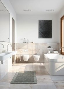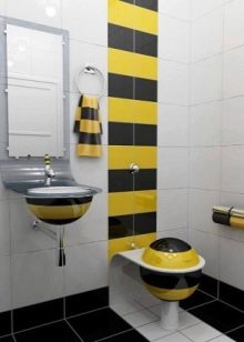 Et helt andet arrangement af alle de nødvendige komponenter vil være, hvis du tager design af et kombineret badeværelse. I et sådant rum er der et toilet, en håndvask og et badeværelse. Ofte placeres også en vaskemaskine og andre husholdningsapparater her. Designet af sådanne rum er især vigtigt, da deres arrangement ofte er mere kompliceret end i tilfælde af separate toiletter.