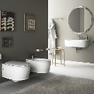 Der er et bidet i det dedikerede toilet. Typisk anvendes sådanne beslutninger, hvis rummet har et større område. Hvis rummet er meget lille, tilrådes det at vælge design i små størrelser - VVS med imponerende dimensioner til et lille område er simpelthen ikke egnet. Toilettet og bidet installeres bedst ved siden af hinanden langs den samme væg. Det vil være muligt at spare plads og visuelt gøre det lettere, hvis der anvendes moderne hængslede strukturer.
