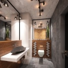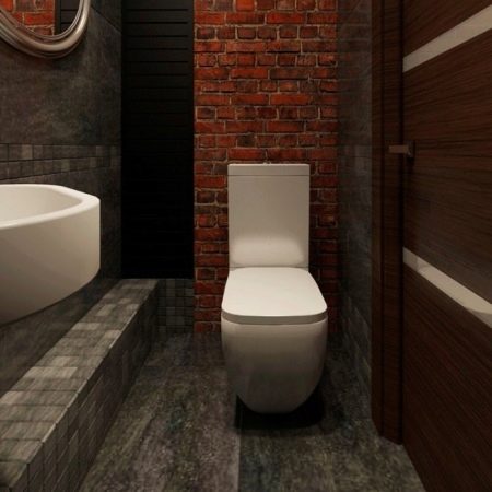 - Loft. I et sådant miljø vil industrielle motiver være på plads.Der skal være flade facader, metalelementer, det er bedre at installere toiletvæggen og afslutte en af væggene med en murværkbelægning.