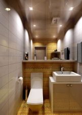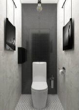 Ofte er et separat toilet langt. En win-win-løsning i dette tilfælde er installer toilettet nær den fjerne væg med lille bredde. Langs de resterende større vægge installeres dræn, spejle hænges, andre indvendige genstande vælges afhængigt af rumets område.Et projekt af denne type er et af de mest populære og ofte anvendte. Selv et lille og langstrakt rum kan gøres smukt, stilfuldt.