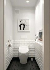 En god løsning ville være skillevæg, der adskiller toilettet fra badeværelset og vasken. Med dette arrangement kan alle elementerne placeres langs en væg. Skillevæggen mellem toilettet og resten af elementerne kan laves af dig selv eller købes i butikken en speciel skærm.