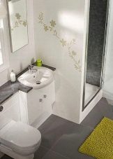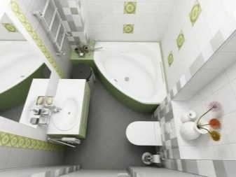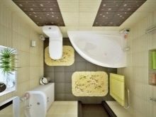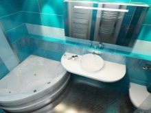 Under betingelserne for et lille kombineret badeværelse er det bedre at installere trendy hjørne boblebad. Et sådant produkt kan installeres i hjørnet af tilstødende vægge placeret i retningen fra døren til rummet. Der vil være ledig plads på højre og venstre væg. Til højre kan du installere en hængende vask med et spejl, og til venstre, tættere på døren, lægge en lille toiletskål med en tank skjult i væggen.