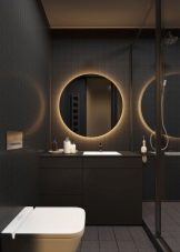 Du kan lægge ekstra lys på skabet med en vask. Oftest anvendes sådanne beslutninger i tilfælde af et kombineret badeværelse. Denne belysningsarmatur er valgfri, men hvis du stadig vil tilføje den, skal du huske på stilen.