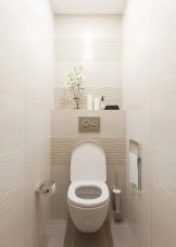 - Mange eksperter i forholdene til et meget lille toilet i et panelhus anbefaler at henvende sig til installationen af et integreret toilet. Det vil besætte mindst kvadratmeter, og alle dets kommunikationssystemer vil være skjult i væggen.