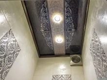 - Stræk loftet. En populær udsmykningsmulighed i vores tid, men de tager ikke det så ofte til at designe et toilet. Det vil ikke være muligt at installere et strækloft med dine egne hænder - du har brug for specialudstyr. Det kan koste meget. I et meget lille toilet er der ikke det nødvendige spændingsområde, du bliver nødt til at vælge en anden finish.
