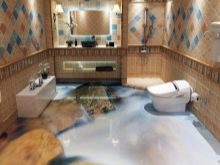 Hvis du ønsker at designe det indre af toilettet så originalt og usædvanligt som muligt, er det værd at ty til lægning specielt 3D bulkgulve. Dette er relativt nye efterbehandlingsmaterialer, der endnu ikke er blevet så populære som fliser, men deres ydeevne og dekorative egenskaber er på ingen måde ringere end keramik.