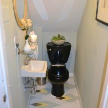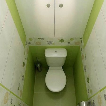 Sådanne materialer kan bruges selv i et meget lille toilet, hvor der kun er et toilet, en krompapirholder og en børste.
