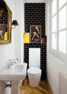- Hvis du designer et lille og smalt toilet, er det vigtigt at kun vælge smalle, ikke for tætte og tykke materialer til vægdekoration i det, ellers skjuler de ikke kun det allerede beskedne rum, men vil også gøre det grovere.
