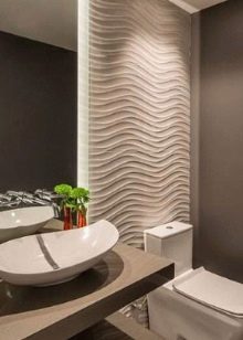 - Vægdekoration i toilettet skal være modstandsdygtig over for de skadelige virkninger af fugt og fugt. Hvis der ikke tages hensyn til denne parameter, bliver materialerne hurtigt værdiløse.