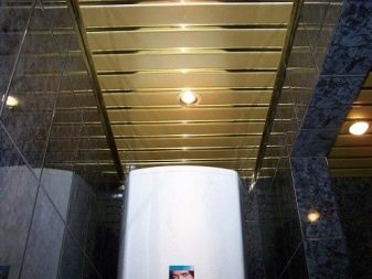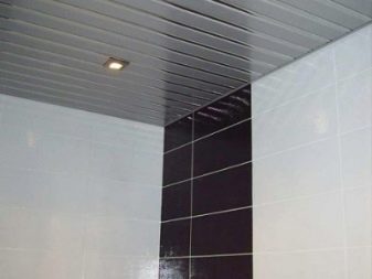 - Spaltede lofter. For nylig en populær mulighed for at færdigbehandle loftet. Rack-produkter er lavet af tyndt metal. I årenes løb vil et sådant materiale ikke blive gult, ligesom plast, det vil ikke forringes under påvirkning af høj fugtighed, det vil ikke blive deformeret. Ofte mellem paneler-skinner installeres indsatslayouts i kontrastfarver, på grund af hvilke interessante designbeslutninger opnås.