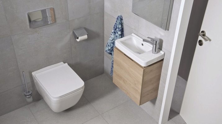 Sparer plads og udendørs tilsluttet model. Det giver dig også mulighed for at skabe en speciel stil i det indre af badeværelset.