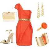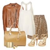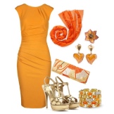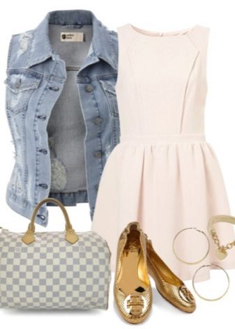 En farvetone i lyst guld dominerer altid ensemblet, og det er bedre at kombinere det med et tøj med mat tekstur.