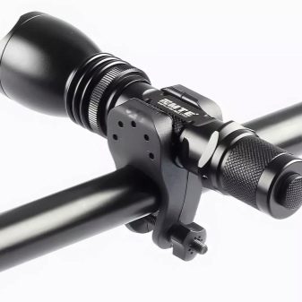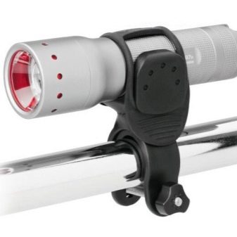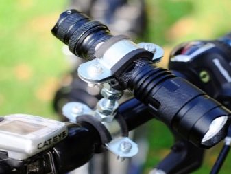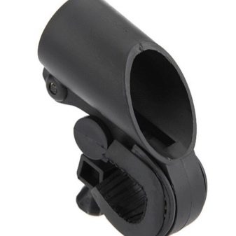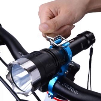 Semi-cylinder aftagelig holder - denne type beslag kaldes det gyldne middelværdi mellem svære at fjerne og elastiske monteringer. Installation på rattet udføres en gang, mens det er muligt at skifte lampe i sig selv. Ideel til enhver cykelmodel såvel som forskellige kørestiler. Du kan bruge en hvilken som helst, endda taktisk, lommelygte.