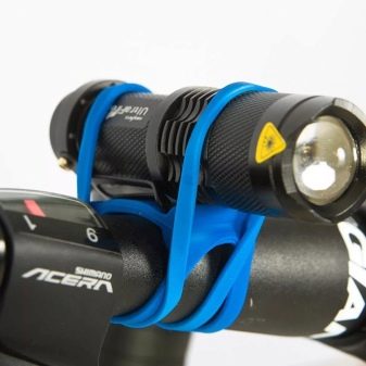 Det elastiske gummi-cykelbeslag med mulighed for fjernelse præsenteres visuelt i form af en silikonestrop udstyret med en laveffekt cyklommelygte.Det vil være muligt at løse det uafhængigt for hver person på rattet, rammen eller snak om en cykel. Sådan fastgørelse er oftest forsynet med hjælpelys og markeringslys.