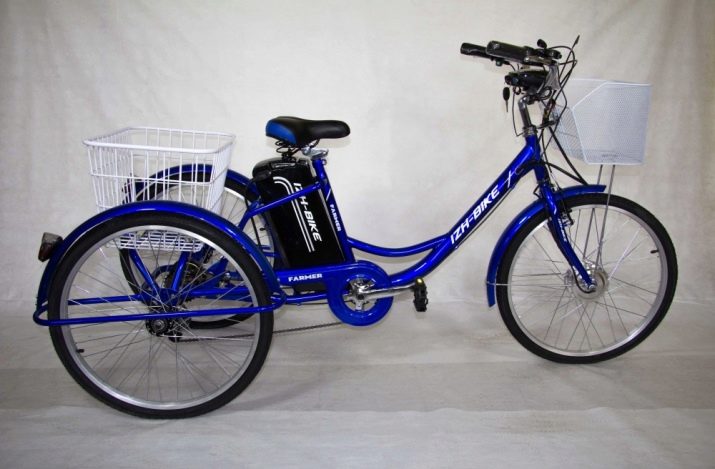 Den elektriske trehjulede version er også velegnet til skiløb i landdistrikter og byområder. Tilstedeværelsen af to kurve gør det velegnet til kørsel på landssager. Derudover kan cyklen tåle en stor belastning - op til 130 kg, og dette hjælper den elektriske motor med en effekt på 250 watt. Ved en opladning kører køretøjet 45 km. Denne kopi leveres til kunder, der ikke er samlet, men den er let at samle.