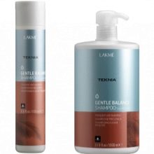 - LAKME TEKNIA Skånsom balance (300 ml). Shampoo med en delikat formel, der ikke irriterer eller tørrer hår. Sammensat af antioxidanter og stoffer, der er udvundet fra rødalger. Beskytter hår mod negative virkninger udefra. Giver aktiv pleje af trådene og den nødvendige ernæring fra rødderne til enderne. Henviser til premiumsegmentet inden for sit felt.