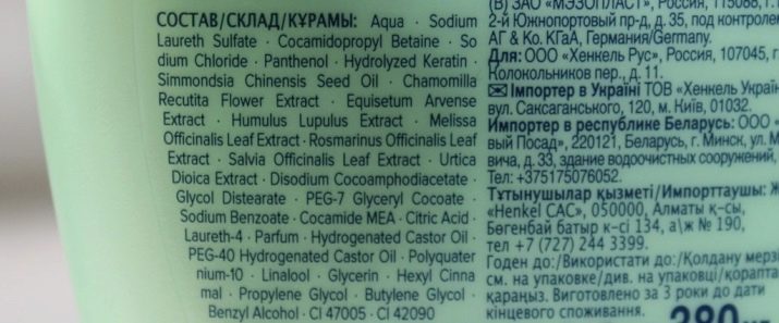 Overvej de mest almindelige ingredienser, der er en del af shampoo, der er designet til at udføre fugtgivende funktion: