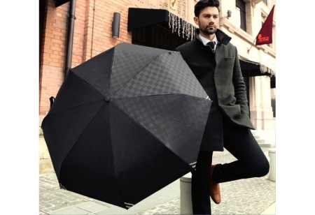 Som regel foretrækker mænd paraplyer med neutrale farver. Det mest populære er tilbehør i beige, grå og marineblå. En klassisk sort paraply med et kontrasterende træhåndtag passer perfekt til en streng forretningsstil.