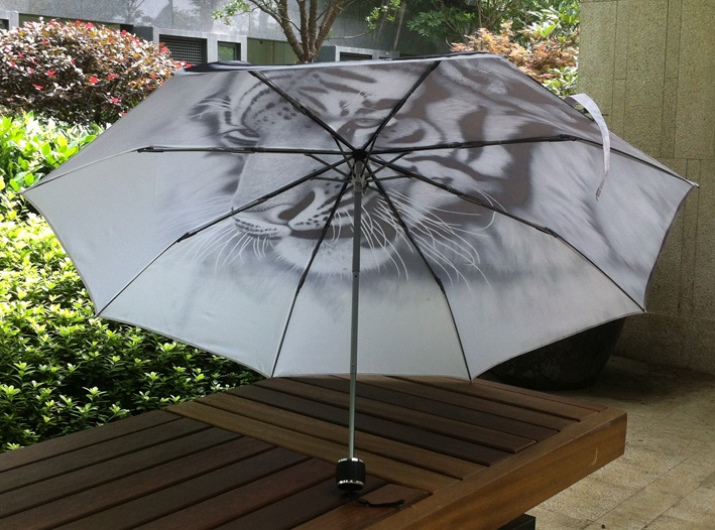 Three Elephants-mærket producerer produkter af høj kvalitet med en forstørret kuppel. Produkterne fra dette firma er i stand til at beskytte dens ejer, selv mod det kraftigste regn. Designet af de tre elefanter paraplyer er kort og meget stilfuldt.