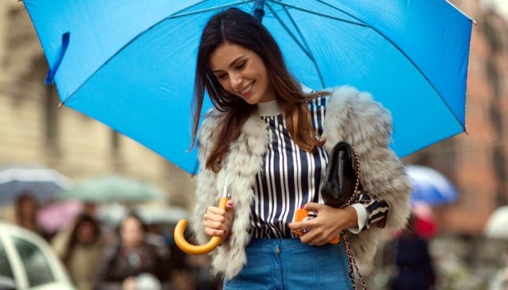 - Produkter med en dyb kuppel vil perfekt beskytte tøjet mod regndråber, selvom en stærk vind blæser på gaden;