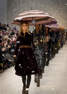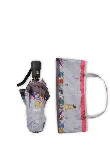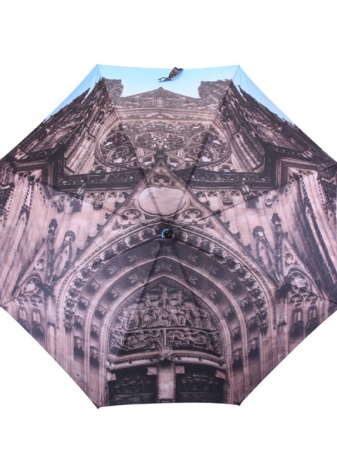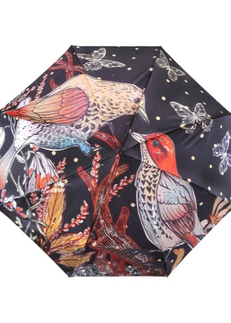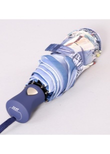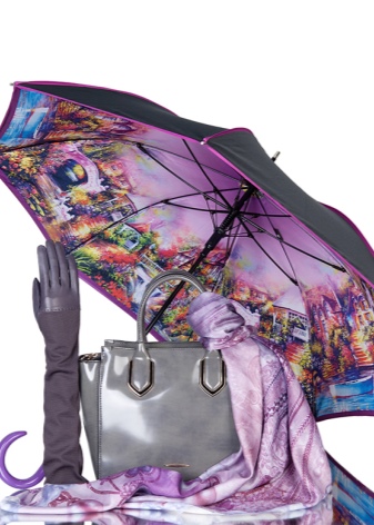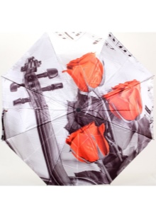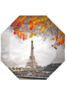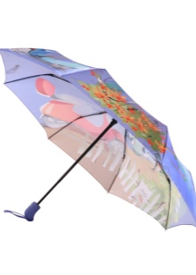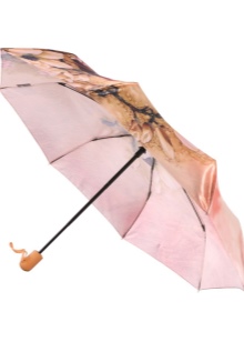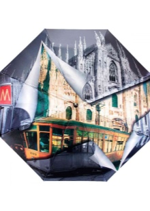 Letvægtsparaplyer med billedet af byer, malerier af berømte kunstnere, landskaber eller øjeblikke fra film ser meget originale ud. Med et sådant tilbehør bliver en fashionista aldrig uden opmærksomhed. Men det er værd at huske, at en usædvanlig model skal kombineres med tøj.