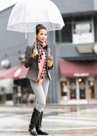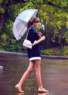Gennemsigtige tilfælde, som klassiske, passer nemt ind i næsten alle stilarter og billeder. Det er meget nemt at vælge et tøj i enhver farve. Sådanne paraplyer har et begrænset og præcist design.