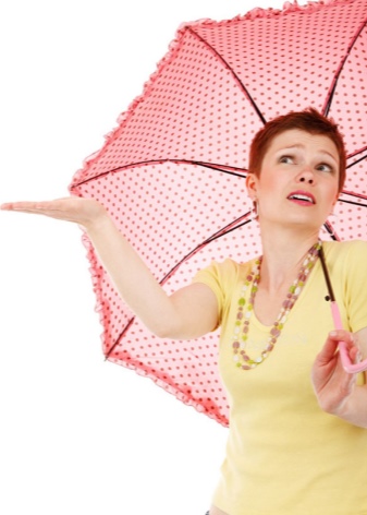 Lethed er både en fordel og en ulempe ved kvinders paraplyer. Sådanne produkter kendetegnes ved deres skrøbelighed, og en skarp vindpust kan bryde dem. Hvis vejret er dårligt, kan tilbehøret bare flyve ud af dine hænder. Det anbefales at købe sådanne modeller til korte ture under lidt regn. I stormvejr og regn er sådanne produkter helt uegnede.