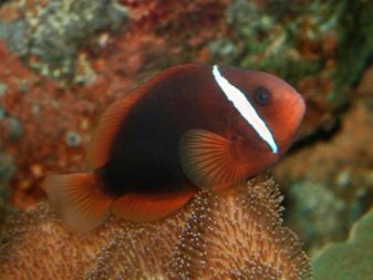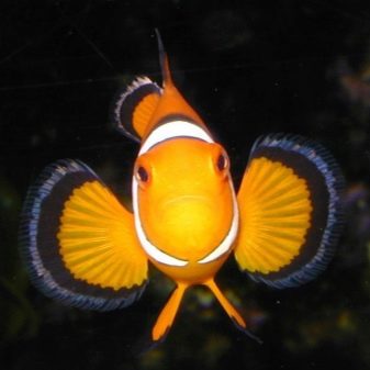 Manchmal gibt es jedoch Amphiprionen, die mit blauen Streifen beschichtet sind oder ein rotes oder gelbes Pigment als Hauptton haben. Auf der Rückenflosse des Clownfisches befindet sich eine charakteristische Kerbe, als würde sie in zwei Komponenten geteilt. Die Brustflossen sind sehr dicht und mit Stacheln ausgestattet, und die Schwanzflosse ist ziemlich weich, aber alle haben einen gut definierten schwarzen Umriss.