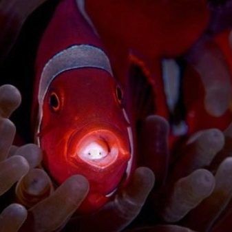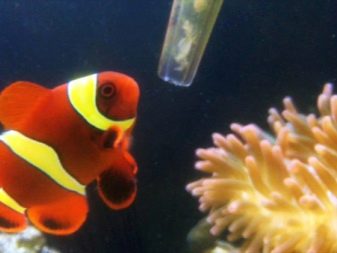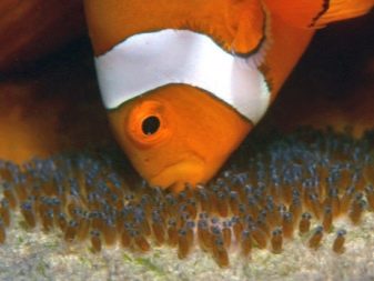 Amphiprion unterscheidet sich von anderen Bewohnern des Aquariums und ungewöhnliches Verhalten. Zum Beispiel spricht eine Kreatur sogar auf eigenartige Weise - klickt, „murrt“ und macht andere Geräusche. In der Natur leben sie lieber in Symbiose mit Seeanemonen. Die Tentakel der letzteren enthalten stechende Zellen und wirken daher als „Beschützer“ für Fische.