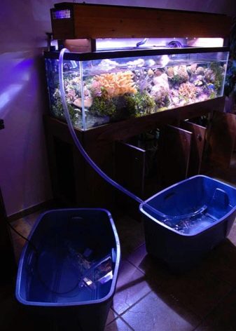 Wasser muss entweder einmal pro Woche mit 10% des Gesamtvolumens oder alle zwei Wochen, aber doppelt so viel Flüssigkeit ausgetauscht werden.