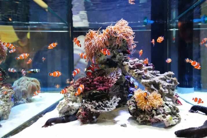 In einem Aquarium ist es besser, es mit Anemonen zu bevölkern oder in Ermangelung einer solchen Gelegenheit die erforderliche Anzahl von Grotten und anderen Schutzräumen zu organisieren.