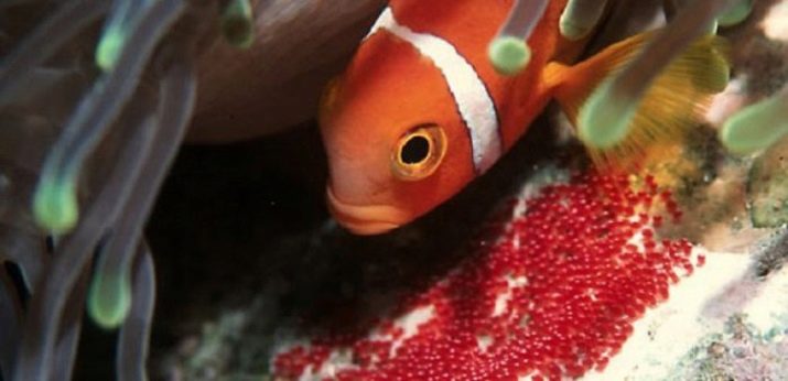 Das Weibchen laicht unter den Tentakeln der Anemone auf der Leeseite, neben den Korallen oder in vorhandenen Grotten.