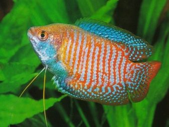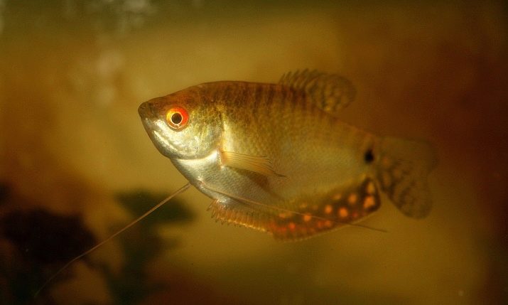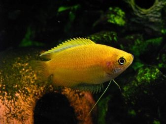 Unter den Gouramis gibt es eine Vielzahl von Arten aller Art, die sich in Größe und Farbe voneinander unterscheiden, so dass jeder Fan des Labyrinthfisches mit Sicherheit das gleiche „sein“ findet. Honiggourami ist sehr beliebt bei Aquarianern, dem kleinsten aller Fische dieser Familie. Er erreicht eine Länge von 4 cm, manchmal kann er bis zu 7 Jahre alt werden, aber in der Praxis kommt dies äußerst selten vor.